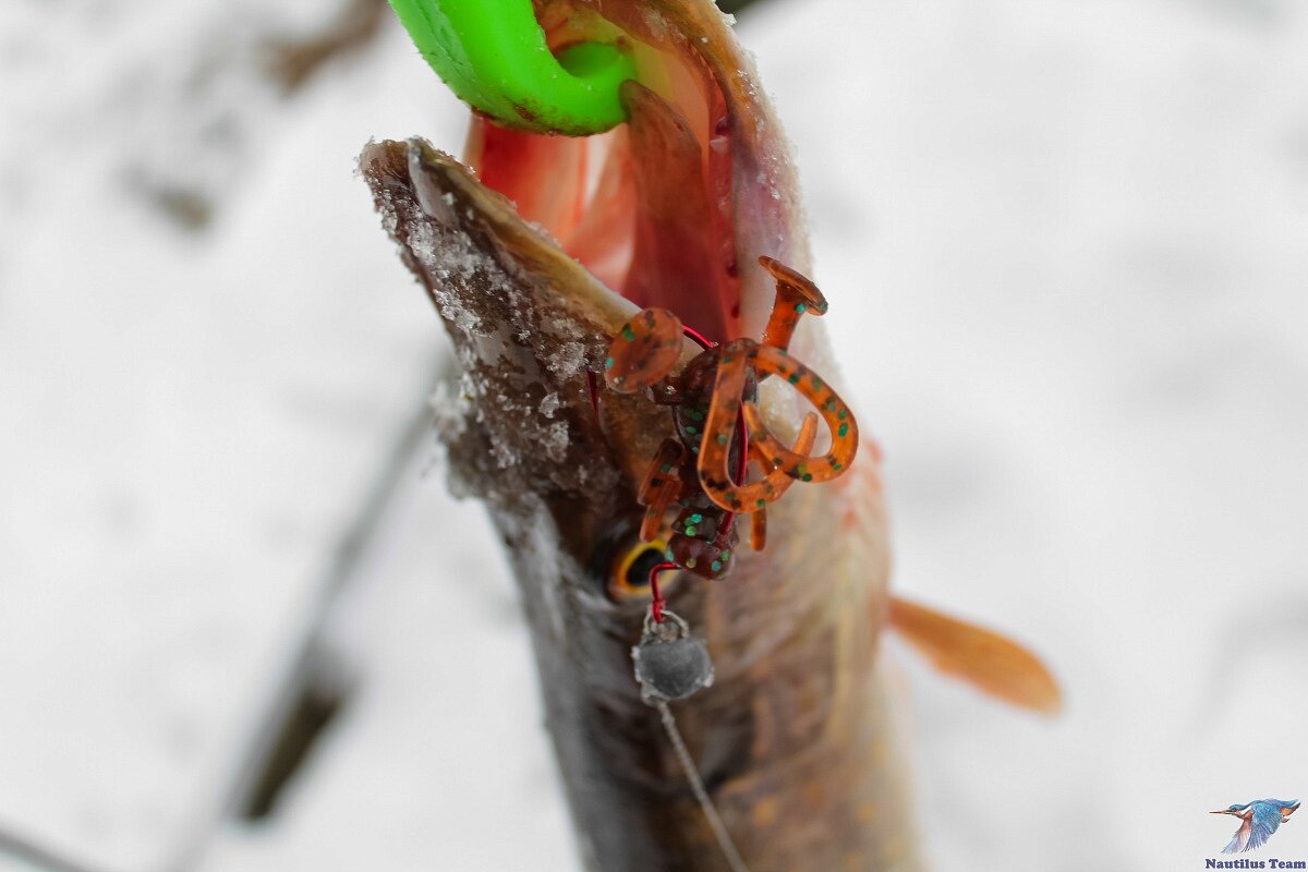 Но в этот раз тема сработала! Чебурашка 4 грамм «краказябра» на офсете и активная анимация (практически донный твичинг) принесли мне зубастую на втором забросе, а в течение следующих 4 часов в моих руках побывали еще 7 рыб – 2 окуня и 5 щук, что для данной реки – отличный результат!