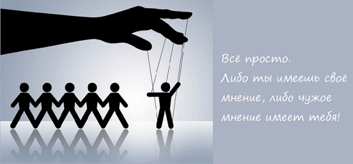 Но мы с вами рассмотрим тот случай, в котором эта фобия проявляется более остро. Живя в нас, она перестраивает наши мысли и действия на столько, что мы теряем индивидуальность и воспринимаем мир по чужой указке.