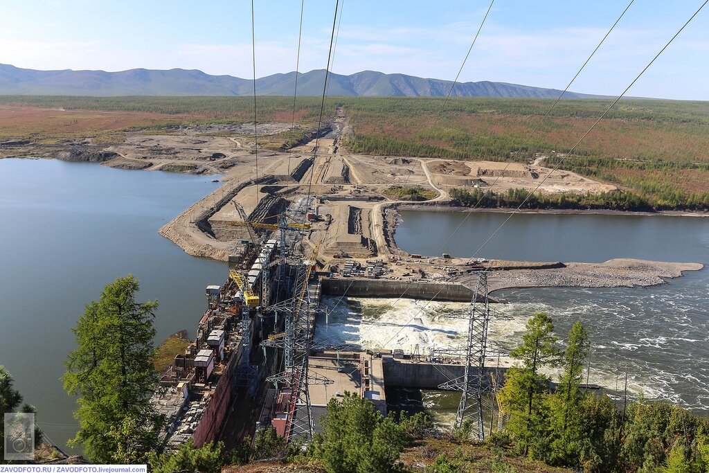 Усть-Среднеканская ГЭС - строящаяся ГЭС на реке Колыма, в Ягоднинском районе Магаданской области. Вместе с Колымской ГЭС (она расположена в 217 км выше по течению), о которой я уже писал http://zavodfoto.livejournal.com/2640927.html, образуют Колымский каскад ГЭС, где Усть-Среднеканская ГЭС будет нижней ступенью. По своему строению она будет представлять собой мощную плотинную средненапорную гидроэлектростанцию. По проекту мощность станции составит 570 МВт, гарантированная мощность - 132 МВт, а среднегодовая выработка электроэнергии составит 2,555 млрд кВт.ч. Уже сейчас завершено строительство первого пускового комплекса мощностью 169 МВт, а полностью достроить станцию намечено в 2018 году.