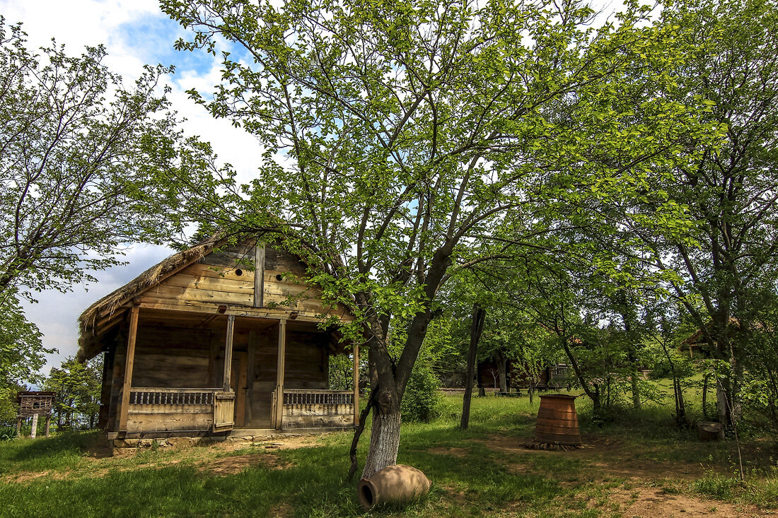 Вся экспозиция музея - это своеобразная грузинская деревня, где каждый дом и усадьба являются отражением различных эпох грузинской истории и географии. Вот бревенчатый дом XVIII века из Имерети, построенный на каменном фундаменте.