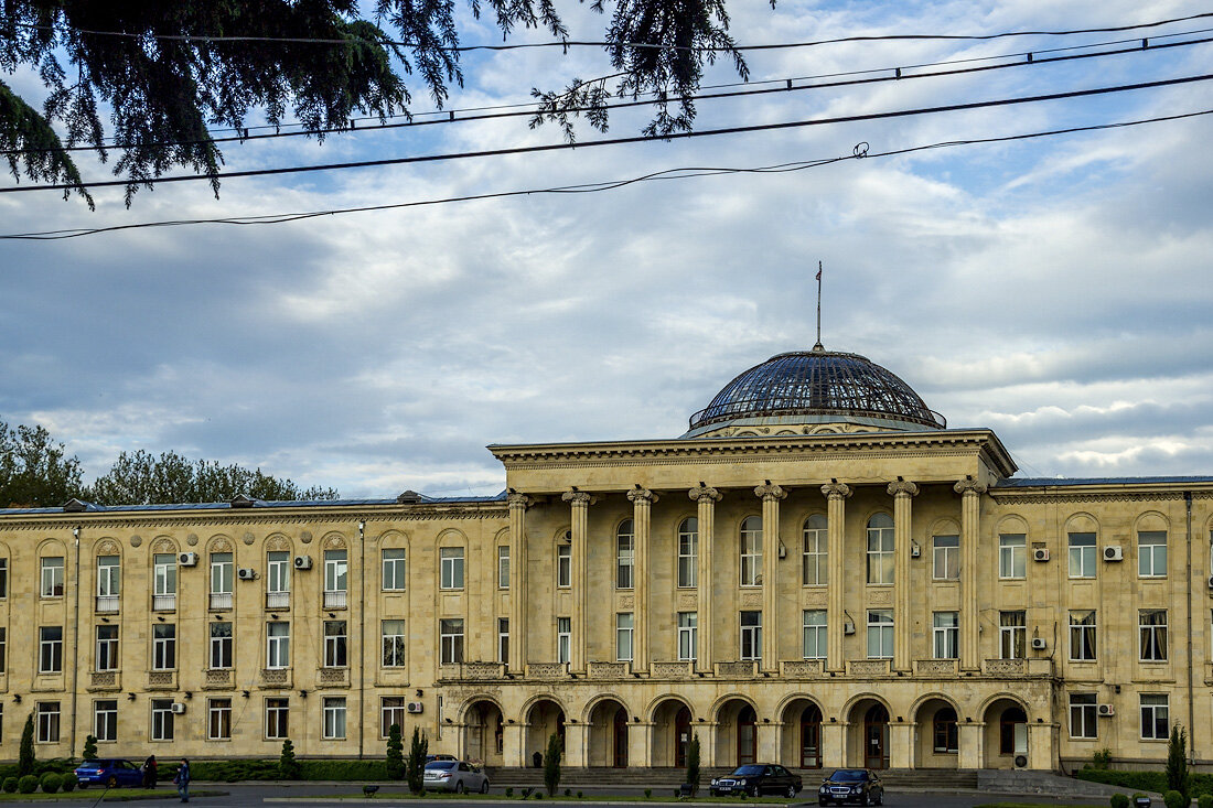 И вот мы с самом центре города, у горисполкома со стеклянными куполом, напоминающем Рейхстаг. До 2010 года перед ним стоял памятник Сталину.