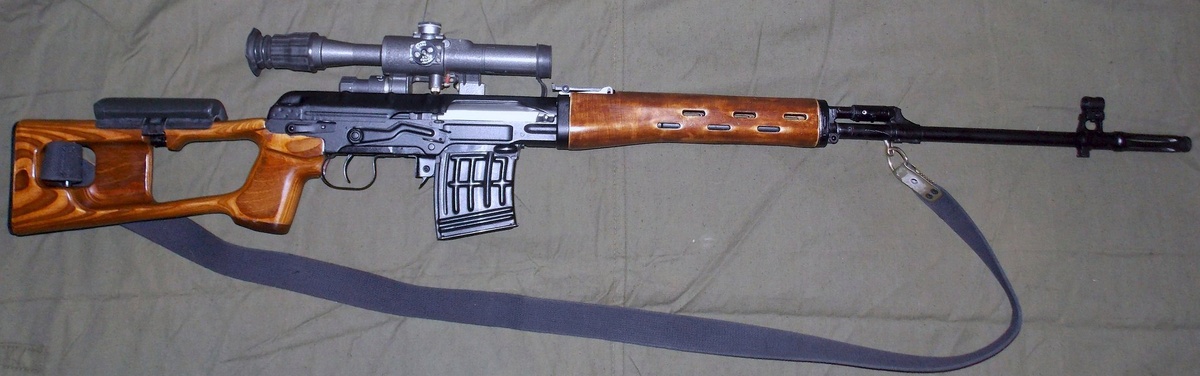 Это легендарная СВД - снайперская винтовка Драгунова, имеет пометку КО - карабин охотничий. От боевой снайперской винтовки он отличается только выпиленной в патроннике канавкой, которая помечает гильзу, чтобы в случае чего ее можно было опознать по пулегильзотеке. Иногда штифтуется ствол, чтобы помечалась еще и пуля, но на практике штифт ставят далеко не всегда. Других отличий нет, патроны используются те же, дальность и кучность стрельбы полностью идентичны армейским образцам: