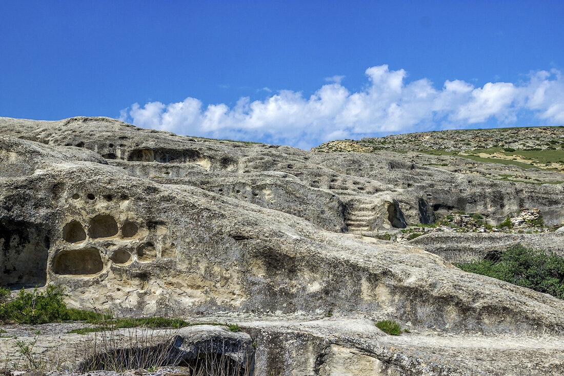 Это один из первых городов на территории Грузии. За более чем три тысячи лет здесь, в огромной скале из песчаника, было выдолблено более 700 пещер, из которых до настоящего времени сохранилось около 150.