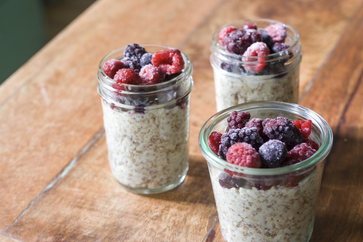 Все мы привыкли, что на завтрак можно перехватить бутерброд с колбасой и сыром, или сжарить яичницу, выпить чашку кофе. Утром каждая минута на счету, поэтому в этой статья подобраны варианты быстрых, а главное оригинальных и полезных завтраков. Ведь даже обыкновенную и скучную овсянку можно приготовить так, что завтрак превратится в самый настоящий праздник. Овсянка в банке Что может быть проще, чем с вечера засыпать необходимое количество овсяных хлопьев, залить натуральным йогуртом или кефиром. Варианты начинок могут быть самыми различными: орехи, сухофрукты, свежие или замороженные ягоды, семена льна и семена чиа, арахисовая паста, какао. Яйца запечные с творогом Этот вариант завтрака - как квинтэссенция всего самого полезного: яйца, творог, сыр Возьмите 100-150 грамм нежирного творога, смешайте с перцем и солью. На дно формы для микроволновки положите творог, сверху разбейте одно куриное яйцо, посыпьте любимым сыром. В зависимости от мощности микроволновой печи для запекания мож