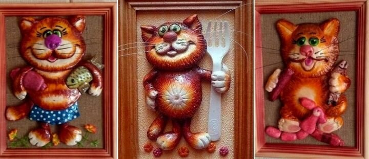 Предлагаем вам мастер-класс по лепке из соленого теста: будем делать забавную игрушку-кота. Это одна из самых популярных «мукосолек». В этой статье вы найдете рецепт соленого теста, шаблон для создания поделки, пошаговые инструкции для изготовления и советы по ее покраске. Готового зверька можно либо выложить на полотне и оставить в рамке, подвесить как самостоятельное украшение либо поставить на полку в качестве игрушки-сувенира. Кота также часто используют в качестве основы для магнитов на холодильник. Такую забавную игрушку приятно подарить и получить в подарок. И конечно, к ней невозможно остаться равнодушным: эта милая поделка из соленого теста неизменно нравится и маленьким детям, и даже мужчинам в возрасте. Что нам понадобится? Ход работы Смешайте соль, муку, воду и клей ПВА. Тщательно вымесите тесто – оно не должно прилипать к рукам или крошиться. Ранее мы уже рассказывали вам обо всех тонкостях приготовления соленого теста, и если на этапе замеса у вас возникли какие-то пробле