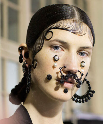 Украшения для лица, которые бы понравились бы Леди Гаге и Жанне Агузаровой. Эти штуки выглядят странно, весело и интересно. Попробуйте прийти в таком на утреннюю планерку или на свидание, и посмотрите, что из этого выйдет. Если серьезно, в каждой из этих коллекции лежит своя философия. Часто, художники иронизируют над современными стандартами красоты и пытаются показать, что внешность каждого уникальна. Не нужно быть, как все. Новый нос из кожи и стразы для глаз Устали от от своих старых серёжек? Почему бы не примерить новые кожаные уши? Для блеска в глазах добавьте стразы. И теперь нет необходимости прокалывать нос, просто прицепите большой блестящий кристалл, потому что полумеры и едва заметные украшения это как-то скучно. Коллекция японского дизайнера Акико Шинзато называется «Другая кожа». Художница объясняет, что эта коллекция про «одержимость людей своей внешностью», и как легко её изменить и манипулировать тем, как вы выглядите. Игры с лицом для мужчин А это украшения для