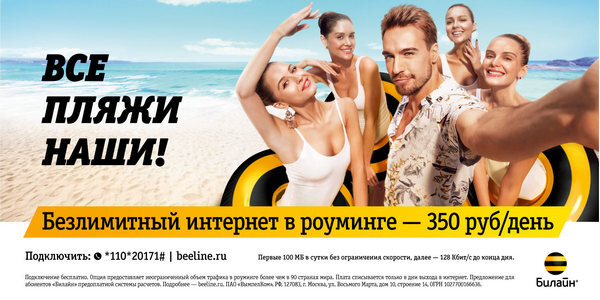 Даже если вы сможете качать что-то на скорости 100 Кбит/с, то за минуту выкачаете 700 Кб, за час — 40 Мб. Или около 1 Гб в сутки (это в лучшем случае). С другой стороны, зачем вам постоянно что-то скачивать, находясь в роуминге. А 128 Кбит/с, которые предоставляют Билайн, МТС и Теле2 должно хватить для веб-серфинга, соцсетей и мессенджеров. Но вот видео онлайн вы вряд ли сможете смотреть. NB1. Данные услуги действуют только в определенных странах. Уточните у своего оператора перед поездкой. NB2. Не забудьте отключить опцию, когда вернетесь на родину. Билайн