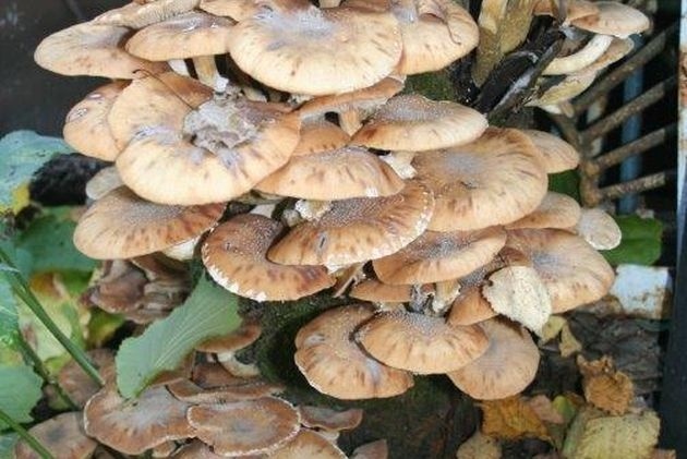 Лето прошлого года выдалось очень дождливое. Опят было столько, что даже в лес идти не пришлось: они выросли на старой яблоне. Но сосед по дачному участку попросил удалить это дерево, опасаясь за свои деревья. Неужели этот гриб настолько опасен для растений? Опенок – не желанный гость в саду, так как способен стать причиной такого распространенного заболевания, как периферическая гниль древесины. Оно поражает и молодые, и старые растения яблони, груши, абрикоса, персика, сливы, вишни и других культур. Заражение происходит с помощью ризоморф гриба. Эти длинные шнуровидные сплетения грибных нитей распространяются в почве от корня к корню и дают отростки. Те, в свою очередь, проникают в кору деревьев в местах механических повреждений, продолжают расти иподнимаются по древесине ствола, «покоряя» достаточно большую высоту. Под корой гриб образует мицелий, что разрушает камбий, а затем и древесину (в ней образуется периферическая гниль). Молодые деревья погибают очень быстро – за 1–3 года.
