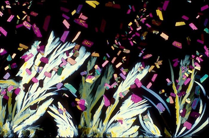 Если бы не заголовок, вы бы в жизни не догадались, что эти абстрактные изображения на самом деле фотографии молекул алкогольных напитков. Жидкости испаряли в герметичных контейнерах, получая кристаллизованные углеводы, а затем снимали через микроскоп с 1000-кратным увеличением. Какой напиток предпочитаете? Получите его портрет.