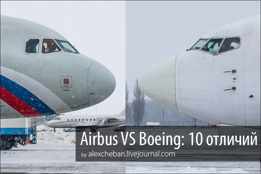 Отличие №6 - Боковые стёкла кабины: у Эйрбаса - прямые, у Боинга угловатые внизу иногда с дополнительными секциями сверху.