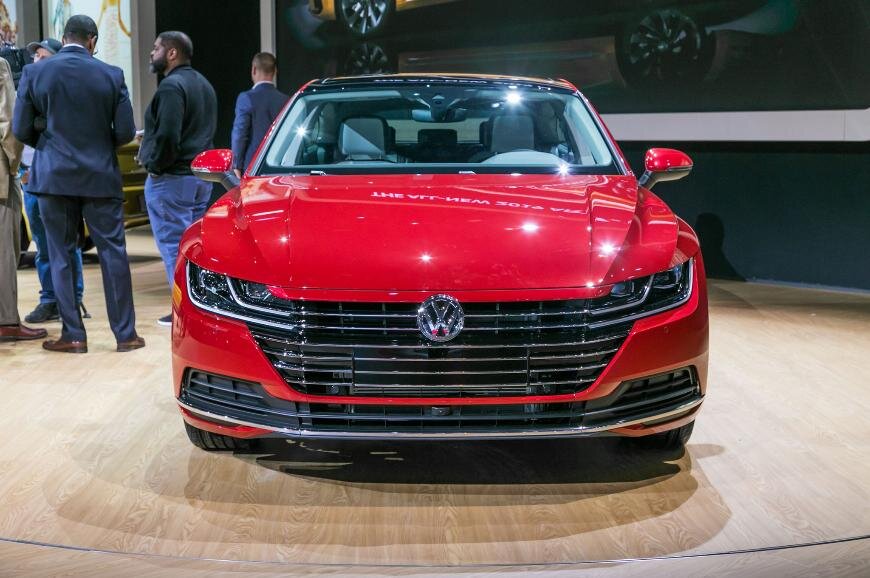 Американская премьера представительского седана Volkswagen Arteon 2019 модельного года прошла на автосалоне в Чикаго. Эта модель стала новым флагманом марки после ухода с рынка модели Phaeton. В новой машине воплотили многие смелые дизайнерские и технологические идеи. Получилось круто, посмотрите! Новинка поступит в продажу уже в третьем квартале этого года и будет доступна в трех вариантах исполнения: SE, SEL и Premium. Но у всех будет один мотор: 2.0-литровый турбированный на 268 л.с. Покупатели смогут выбрать только между полным и передним приводами. Уже в базовой комплектации у машины будет подогрев передних сидений, светодиодные фары, систему предотвращения столкновений, автономное экстренное торможение, монитор слепых зон и 8,0-дюймовый сенсорный экран с поддержкой Apple CarPlay и AndroidAuto. За доплату автомобиль могут нафаршировать дополнительными опциями. Например адаптивный круиз-контроль, полнофункциональную виртуальную приборную панель Volkswagen Digital Cockpit,