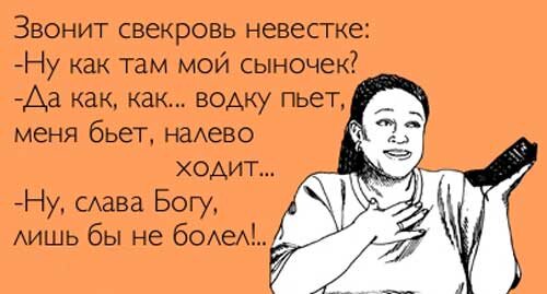 Сколько же ходит юмора вокруг одного только слова - свекровь... И ведь самое то главное, что большинство всех этих историй берется из жизни... Ну что, давайте немного посмеемся! Ведь главное помнить - смех продлевает жизнь! ))