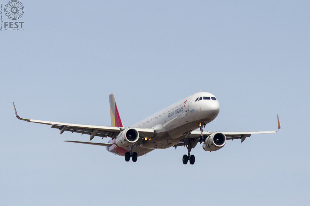 ____________________________________________ ● Airport ~~~> Khabarovsk International Airport ● Registration ~~~> HL8004 ● Company ~~~>Asiana Airlines ● Aircraft ~~~> A321-231 ● First flight date ~~~> 26.09.2014г. (3,4 years) ____________________________________________