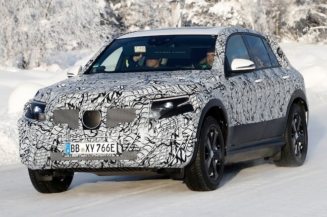 Наши фотографы-шпионы захватили эволюционную версию внедорожника вне игры в дикой природе. Мы не можем не думать, что это выглядит совсем не так, как в Париже, в стиле радикального стиля Generation EQ, хотя есть много вещей, которые можно было бы скрывать под всем этим тяжелым камуфляжем. Хотя внешний вид выглядит совсем по-другому, модель разделяет наклонную линию крыши концепции, которая сужается в небольшое заднее окно. Возможно, прототип имеет аналогичный задний фонарь. Когда приступят к производству, модель может быть обозначена как EQ C, что поможет дать покупателям представление об иерархии моделей, поскольку оно коррелирует с уже установленной схемой именования Mercedes-Benz. Это будет первая модель, выпущенная под маркой Mercedes EQ для электро