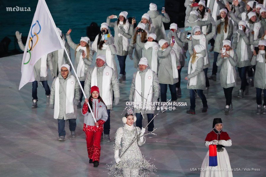 Начались Олимпийские игры в Южной Корее. Сегодня открытие. Есть сразу 2 знаковых фото. 1. Это российские спортсмены в нейтральной форме под нейтральным флагом. Нашим нельзя использовать вообще никакую государственную символику. А российскую сборную надо называть "олимпийские атлеты из России". 2. Северная и Южная Корея впервые в истории выступают на Олимпиаде в одной команде. Флаг несут 2 спортсмена: один из КНДР, другой из Южной Кореи.