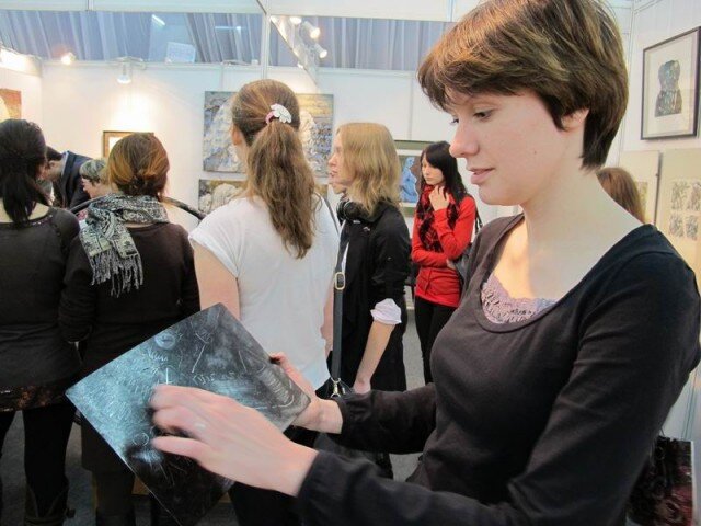 История про стенд художника-иллюстратора Юрия Штапакова из Санкт Петербурга на выставке "Арт-Пермь 2012". Это наверное единственный интерактивный стенд на выставке где любой желающий может изготовить собственными руками с применением специального станка так называемую монотипию - одноцветную "гравюру" на бумаге.