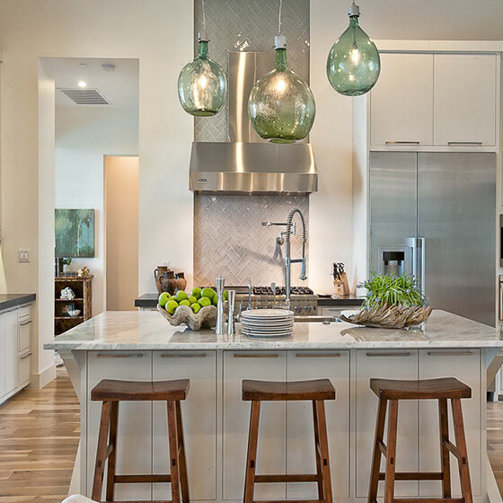 Изначально кухня использовалась с целью приготовления пищи. Однако в современных реалиях она является и столовой, а также стала излюбленным местом сбора семьи и гостей. Чтобы сделать такое помещение максимально удобным, необходимо уделить внимание эргономике, расположению мебели. Кроме того, важно правильно организовать освещение, без которого использовать эту площадь комфортно будет просто невозможно. О том, как подобрать светильник для кухни, на что обращать внимание при выборе, мы расскажем ниже. Делим на зоны Прежде всего, покупателю требуется определиться, под какое количество зон будет разделено помещение. Это поможет понять, какие типы источников света ему нужны. Как правило, у небольших кухонь таких зон две: непосредственно место приготовления пищи, а также столовая. Наиболее часто место приготовления пищи освещается основным центральным источником и встроенной в верхние модули мебели подсветкой. Освещение столовой зоны может быть более разнообразным. Напр