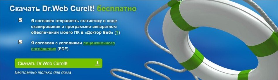 Подозреваете вирусы на компьютере? Не доверяете своему антивирусу? Тогда воспользуйтесь бесплатной утилитой Dr.Web CureIt!, которая просканирует ваш компьютер и найдет (или не найдет) спрятавшиеся вирусы и трояны. Dr.Web CureIt! не устанавливается на ПК, поэтому не будет конфликтовать с уже установленным антивирусом. Это антивирус на один раз, потому что антивирусные базы в нем не обновляются (поэтому утилита и бесплатна). После запуска утилита не оставляет следов. Ни один антивирус на дает стопроцентной гарантии от вирусов. Виноваты в этом не только разработчики защитных утилит. Сами пользователи зачастую заносят вирусы на компьютер. Dr.Web CureIt! или аналогичную утилиту (подобные разовые антивирусы есть и у других компаний) рекомендуется запускать в том случае, если вы подозреваете, что на компьютере завелись вирусы, но ваш антивирус их почему-то не видит. А еще эта утилита хороша для профилактики. Можно скачивать и запускать Dr.Web CureIt! раз в квартал или раз в полгода. Шаг 1