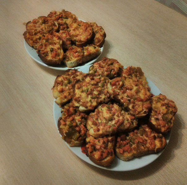 Нужна недорогая закуска к столу? Или, может, хочется по-быстрому, но при этом вкусно перекусить? Тогда вот эта мини-пицца - именно то, что вам нужно. Готовится быстро, стоит копейки, зато на вкус очень и очень хороша. Вам потребуется: Приготовление: 1. Порезать батон тонкими пластами точно так же, как если бы вы его резали для бутербродов. 2. Мелко порезать лук, сосиски и огурец, сыр потереть. Все положить в миску, полить майонезом и перемешать, после выложить на куски батона. 3. Выложить батон на противень и поместить в духовку на 10 минут при 200 градусах. Получается этакая мини-пицца. Внизу хрустящая основа, а сверху вкусная, запеченная начинка. Ммм... безумно вкусно! Время приготовления всего 20-25 минут. 1 порции вполне хватит на компанию из 4-5 человек. Наслаждайтесь! Ну и не забывайте подписываться на канал)))) Советую: Сытный пирог. Удиви семью обедом и потрать всего 200р! Суперпитательный салат всего за 80р. Идеальная закуска к алкоголю! Как приготовить вкусную пиццу все