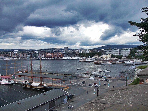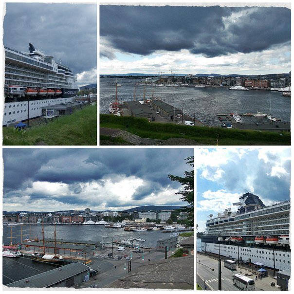 Про саму крепость будет отдельный пост, но не могу не отметить смотровую площадку с отличными видами. Из крепости Акерсхус открывается совершенно замечательный вид на бухту Осло-фьорда. Главные объекты — городская ратуша и набережная Акер Брюгге. Круизный корабль "Celebrity constellation"