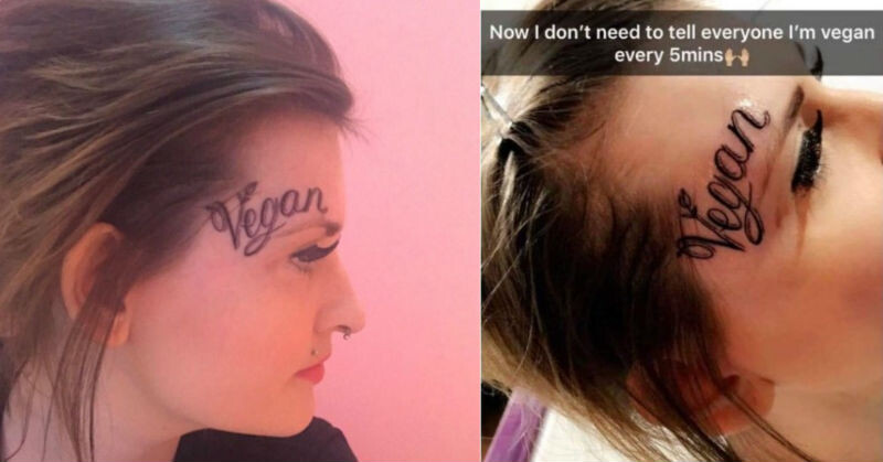 Девушка сделала на лице татуировку «Я веган», чтобы не говорить об этом каждые пять минут