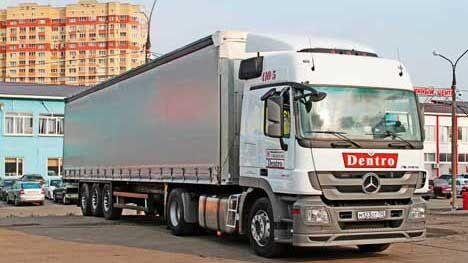 Очень много «Актросов» завезли в Россию со вторичного рынка Европы, а в последнее десятилетие перевозчики активно покупали новые машины, и нередко крупными партиями. Одно из таких успешных предприятий – подмосковная компания «Дентро» с парком 857 магистральных автопоездов. Компания основана в 2005 году и специализируется на дальнемагистральных перевозках по заказам коммерческих предприятий. Постоянных клиентов – около пяти сотен, включая крупные торговые сети, производственные и дистрибьюторские компании. Простаивать без работы не приходится, и более того – с ростом объемов перевозок расширяется штат водителей, а в парк поступает новая техника. Подавляющее большинство полуприцепов в компании «Дентро» – шторные безбортовые марок Kogel и Schmitz Cargobull. То есть подходящие для перевозки множества видов грузов: от упакованных в палеты продуктов питания до промышленного оборудования и строительных материалов. Есть заказы на доставку весьма объемных металлоконструкций, выступающих за пределы габаритной высоты автопоезда и перевозимых со сдвинутым тентом. В этих случаях перевозчик получает спецразрешение на перевозку негабарита в «Росавтодоре», а также согласовывает маршрут и время движения в ГИБДД. География перевозок весьма обширна, и тягачи с логотипом «Дентро» на облицовке кабины – частые гости в большинстве регионов России: от Калининграда до Забайкалья.