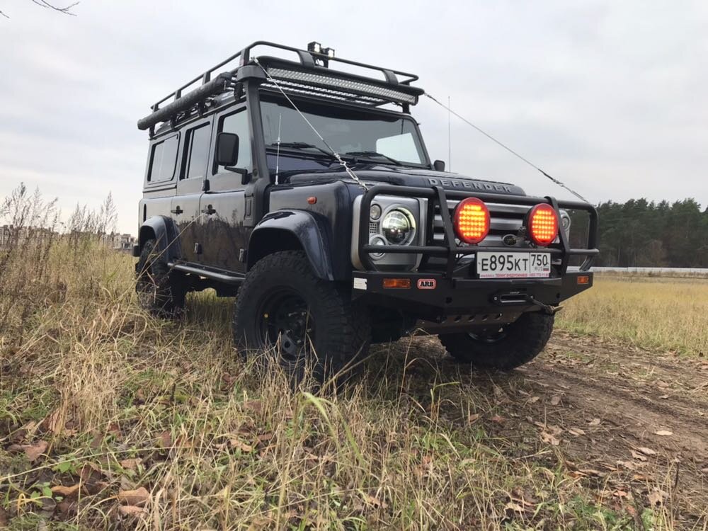 Этот Land Rover Defender 110 может в кромешной темноте рассмотреть человека на неосвещенной обочине или перебегающего поле зверя, но это не основной тюнинг, который он получил в ателье "Тюнинг Центр 4х4". Передний бампер ARB оригинальный, а вот задний бампер выполнен в стиле оригинального бампера Дефа, но с возможностью установки электрической лебедки и фаркопа. Запаску перенесли на калитку, чтобы разгрузить заднюю дверь. В крыше сделали огромный люк, который может быть полностью отброшен на экспедиционный багажник, если он не загружен скарбом. В салоне сломали штатный подлокотник и под ним смонтировали автономный воздушный отопитель. Оригинальное и удачное решение. Весь салон обшит алюминием. В итоге, Деф можно мыть просто из мойки или шлангом и не беспокоиться, что будут сырые коврики. А вот самое интересное – светодиодные прожекторы, между которыми спряталась камера тепловизора. Система в транспортном положении не мешает и не повредится камнями или ветками в лесу. В режиме ночного
