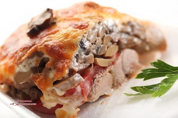 Ингредиенты: Свинина (карбонат) - 4 кусочка, грибы замороженные или свежие - 150-200 гр, помидор - 1 шт, сыр - 200-250 гр, майонез, соль, специи - по вкусу. Приготовление: 1. Нарезанное порционными кусками мясо отбиваем через пленку и выкладываем на смазанный маслом противень. Добавляем соль и специи. 2. Снимаем с помидора шкурку (опустив для этокго в кипяток на минуту), режем кружочками и выкладываем на мясо. 3. Сыр натираем на крупной терке. Часть выкладываем на мясо с помидорами (примерно 1/3). 4. Грибы выкладываем на сыр, можно предварительно не размораживать. Затем поливаем майонезом (в очень умеренных количествах), солим и посыпаем оставшимся сыром. Ставим в духовку при 200 градусах минут на 20. Приятного аппетита!