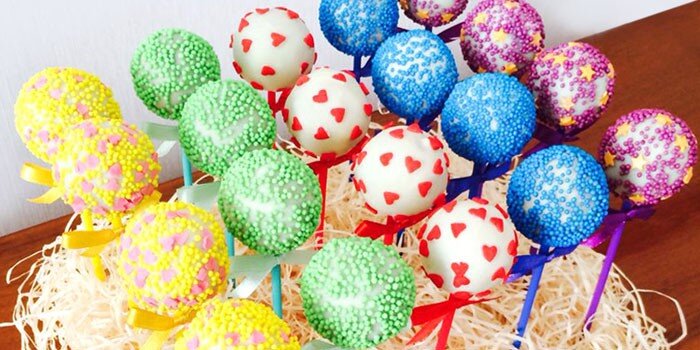 Знаменитый американский десерт кейк-попс – небольшое бисквитное пирожное, покрытое глазурью на палочке. Кейк-попсы зачастую выступают в качестве сладкого декора на детских или взрослых праздниках. У пирожного оригинальная форма, напоминающая другое вкусное лакомство, родом из Америки – чупа-чупс. Создавая этот десерт, можно проявить фантазию и воплотить самые оригинальные идеи, так кейк- попс станет настоящим украшением торжества. Ингредиенты: Бисквитное тесто: - 5 яиц - 150 гр муки - 100 гр сахара,пакетик ванили - 2 ст.л какао Начинка: - 100 гр черного шоколада или молочного, как вам больше нравится - 100мл сливок (не менее 20 %) - 30 гр сливочного масла - 30 гр сахарной пудры бисквит: Белки отделить от желтков. Отдельно взбить венчиком желтки с 50 гр. сахара + ваниль, отдельно белки, до устойчивой пены, затем добавить оставшиеся 50 гр. сахара. Во взбитые желтки ввести муку и какао порошок небольшими порциями, плавными движениями вмешать в эту массу взбитые белки. Дела