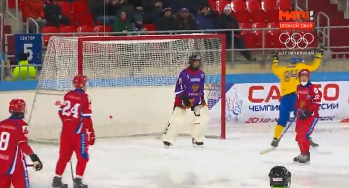 31 января. Среда. Игра между командами Швеции и России состоялась в 19:30 по местному(12:30 по московскому) времени. Трибуны почти полные Посмотреть на игру сильнейших команд на "Ерофей"-Арене собрались 7,5 тыс. болельщиков Игра началась с того, что игроки команды Швеции с лету на первой десятименутке поразили дважды наши ворота. На пятой минуте Даниэль Берлин с подачи Юхана Лёвстедта, а на десятой Йоаким Андерссон с подачи Пер Хельмурса. Счет становится 2:0 Только на 29-й минуте Алану Джосоеву удается распечатать ворота шведов. Счет 2:1, первый тайм завершен. А на 48-й минуте в начале второго тайма Максим Ишкельдин счет сравнивает 2:2 Сравняли счет , казалось бы начинаем с чистого листа. Но опять шведы забивают нам гол , это Йоаким Андерсон с подачи Адама Гильяма. Счет 3:2 Следуют два удаления в нашей команде и шведы бысто реализуют численное преимущество, забивая подряд два гола в наши ворота: Мартин Йохансон с углового и Кристофер Фагестрём с игры. И снова Фагестрём,