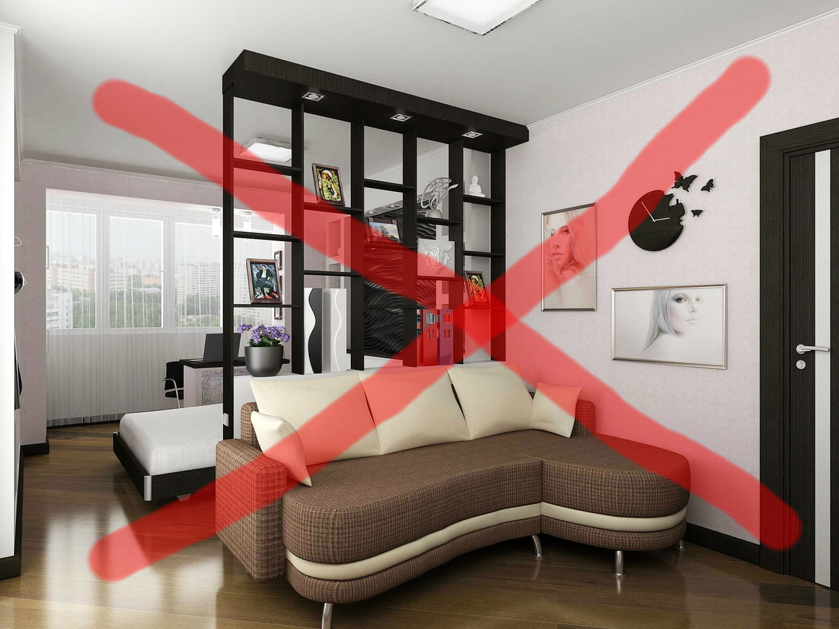 Нехватка места – не повод махнуть рукой на дизайн. Посмотрите, как избежать самых популярных ошибок. 1. Шкаф вместо гардеробной Если шкаф не встроенный и не занимает всю стену от пола до потолка, то он наверняка будет самым большим объектом в комнате. Шкафы бросаются в глаза и давят, лишают пространство воздуха. Поэтому даже в маленькой квартире стоит постараться выделить гардеробную, где спрячется всё – от одежды и сезонных вещей до пылесоса, чемоданов и гладильной доски. Совет: если есть ниша или кладовая, то в неё можно встроить полки и закрыть сдвижными дверьми. Обустроить гардеробную можно и в узких комнатах-пеналах. Не бойтесь, если гардеробная будет проходной. Например, для спальни это вполне нормально. 2. Кухонный гарнитур без верхних шкафов Миф о том, что отсутствие верхних шкафчиков делает кухню просторней, довольно живучий. Но подойдёт такой вариант только тем, кто живёт один или предпочитает заказывать еду на дом. Всем остальным систем хранения точно будет не хватать