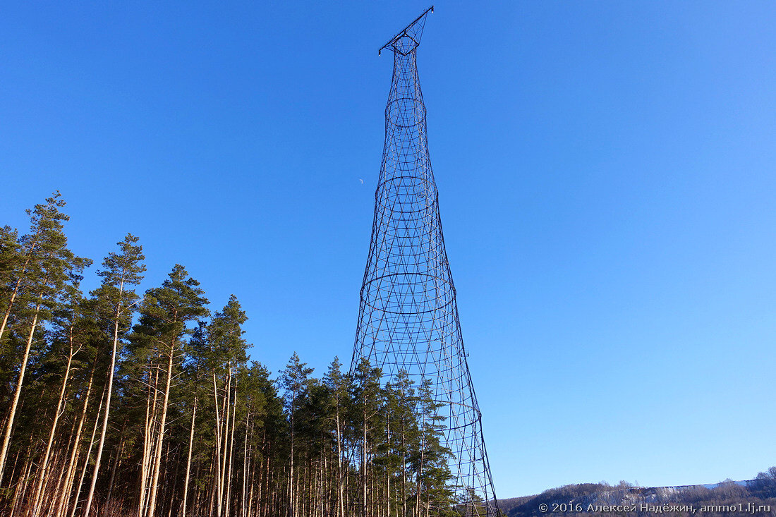 В 1927—1929 годах по проекту и под руководством Владимира Шухова под Нижним Новгородом были построены шесть гиперболоидных башен высотой 128, 68 и 20 метров, которые служили опорами ЛЭП НиГРЭС ru.wikipedia.org/wiki/Шуховская_башня_на_Оке. Две 128-метровые башни стояли рядом на берегу Оки и были нужны для перехода ЛЭП через реку на противоположный высокий берег.