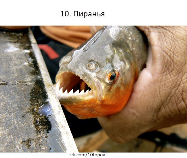 Вы удивитесь, какая самая опасная... Пиранья обитает в Бразилии и Южной Америке, её размер редко превышает 30 см в длину, но она обладает удивительно острыми зубами. Она питается любыми существами, которые попали в воду и охотится только стаей от 30 до 150 особей в среднем. Один хороший укус такой рыбы может лишить пальца, однако не известно официальных случаев, когда человек умирал от пираньи. Электрические угри находятся в водах Амазонки и Южной Америки и они не нападают на людей, если не чувствуют угрозы. Однако достаточно поплыть в их сторону, как такая ситуация может стать виной поражению электрическим током в 300-650 вольт! Такого разряда хватит, чтобы убить любое существо, включая человека. Сом Багарий водится исключительно в реке Кали, между Непалом и Индией. В эту реку, местные жители сбрасывали тела усопших и этими телами стали питаться Сомы. Теперь эту рыбу привлекает один лишь запах человеческой плоти в воде, как она сразу начинает охоту на человека. Стоит отметить,