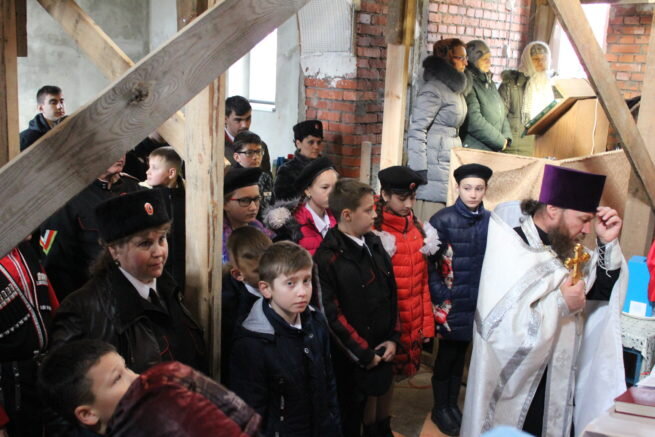 Учащиеся школы № 12 села Киевского Крымского района дали клятву казачат. В храме Державной иконы Божьей Матери собрались двенадцать самых активных ребят из 5-го «В» класса. После напутственного слова атамана Киевского хуторского казачьего общества хорунжего Бориса Чепига, ребята зачитали текст присяги. Настоятель храма протоиерей отец Сергий (Золотарев) отслужил молебен «Во начинание добрых дел» и дал духовное наставление юным казачатам. Школьники, в свою очередь, пообещали достойно чтить казачьи заповеди, ответственно относиться к учебе, не подводить наставников и атаманов, а также любить свою Родину. Источник: ИА «ВК Пресс».