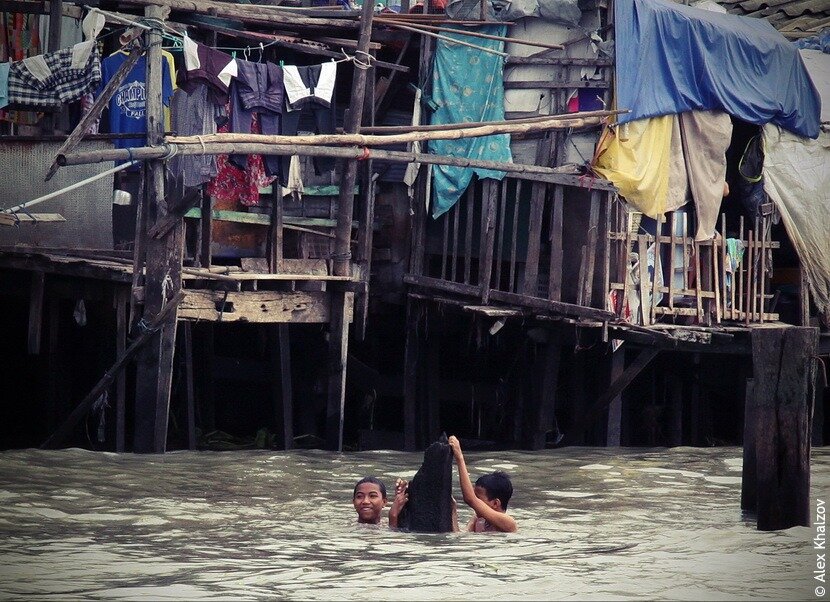 Местные держатся за свои лачуги около воды.