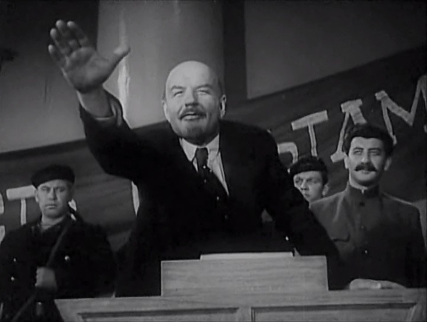 К 20-летию Великой Октябрьской социалистической революции советская кинематография закончила и в юбилейные дни показала кинозрителям Москвы, Московской области, Ленинграда, Киева, Харькова, Одессы, Минска, Сталина, Магнитогорска и других городов исключительный по силе драматургии и неподражаемый по силе актерского мастерства, великолепной режиссуры, монтажа и операторской работы — большой художественный фильм «Ленин в Октябре». Фильм заслуженно принят всеми как выдающееся произведение искусства, как замечательный по силе и смелости первый пример трактовки в искусстве ленинской тематики и образа гениального вождя В. И. Ленина. После премьер фильма в ряде указанных центров страны, на которых присутствовало огромное количество зрителей, с огромным энтузиазмом принявших этот фильм, Главное управление кинематографии приступило к подготовке массового его тиража для повседневного показа на экранах страны и заграницы. Одновременно приступлено к срочному изготовлению немого варианта фильма д