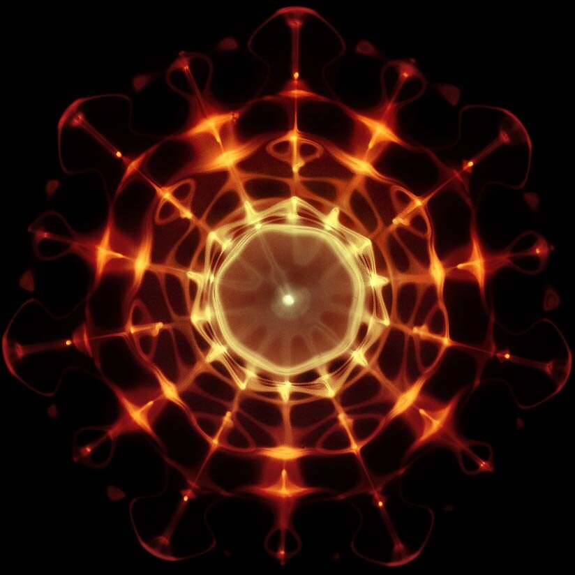 Звук представляет собой поток энергии, текущей подобно водному потоку. Звук может изменить среду, через которую он проходит, и сам изменяется ею. Каждая звуковая волна — есть сила, которая творит соответственную реакцию. Существует активная сила и воспринимающая сила и область их взаимодействий. Согласные колебания образуют гармоничные частоты, что приводит к притяжению субатомных частиц друг к другу. Диссонансные колебания вызывают разъединение или взрыв частицы или формы. 55Hz_Square55Hz_Square Киматика — это наука о формообразующих свойствах волн. Термин Киматика был введён учёным из Швейцарии Хансом Йенни, продолжившем работу немецкого учёного Эрнста Хладни (1756-1827 гг.). Воздействия звуковой волны на вещества разной природы Ханс Йенни запечатлел на фотоплёнку. Он рассыпал на поверхность стальной пластины песок, глину, жидкие вещества и под воздействием колебательных движений разной частоты, вещества на пластине принимали упорядоченный рисунок. Сложность рисунка напрямую зав