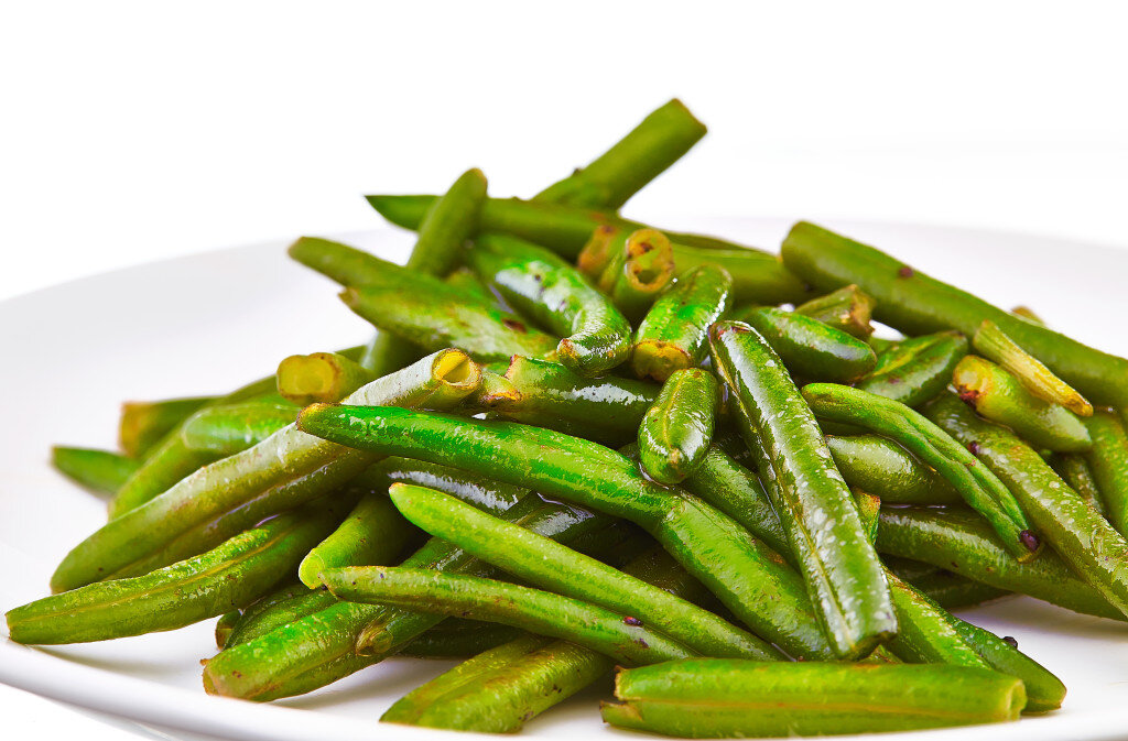А ведь стручковая фасоль - это не только вкуснейший гарнир, но и самостоятельное блюдо. Мне и мясо то не нужно, если в меню у нас она - королева всех гарниров. Конечно, блюда из свежей стручковой фасоли просто бесподобны, но замороженная фасоль нисколько не хуже. Напоминает о лете и вносит разнообразие в череду повседневных гарниров. Самый простой и любимый способ приготовления стручковой фасоли в нашей семье незатейлив. Фасоль отваривается в чуть подсоленной воде в течение 10-15 минут, откидывается на дуршлаг. Когда стечет вся вода, обваливаем фасоль в муке с небольшим количеством соли или сухарях и жарим в подсолнечном масле на сильном огне. И если вы не противник чеснока, смело добавляйте его в конце приготовления в это блюдо. На мой скромный взгляд чеснок идеально сочетается со стручковой фасолью. Улетает со стола такой гарнир со свистом. Правда, чаще всего таким способом мы готовим фасоль свежую. Мороженную фасоль зимой, если она покупная и порезанная, мы не размораживая жари