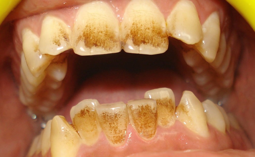 Даже незначительно измененный в цвете зуб значительно портит улыбку, мешая непринужденному общению. Причины окрашивания тканей зуба могут быть внешними или внутренними. · Любое интенсивно окрашенное растительное вещество может окрашивать зубы, так как молекулы пигмента связываются с поверхностным слоем эмали. Жевание или курение табака вызывает значительное пожелтение эмали. Темные и кислые напитки, такие как кофе, чай или газировки, наносят двойной удар так как кислота делает зубы более пористыми и они легче впитывают пигмент. В зависимости от причины, цвет может быть оранжевым или даже зеленым.Хорошая новость об этом типе пятен заключается в том, что его можно удалить с помощью хорошей гигиены полости рта и отбеливающей зубной пасты. При длительном употреблениии таких продуктов сделать это бывает очень сложно. · Некоторые антибактериальные средства, например, хлоргексидин тоже окрашивает зубы и пломбы. Это явление является временным. · Некоторые антигистаминные препараты, антипсих