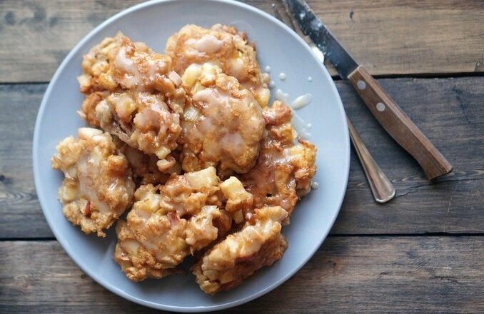 Готовятся они считанные минуты, а результат просто потрясающий. Многие принципиально избегают блюд с обжаркой в масле. Это неоправданно. Если брать свежее масло (не то, в котором уже жарили несколько раз), обжаривать на среднем огне и готовые фриттеры выкладывать на бумажные полотенца (чтобы излишки масла уходили) — получается очень вкусное блюдо, без намёка вкуса масла и уж тем более ничего вредного в них не будет. Ингредиенты: Мука — 160 г