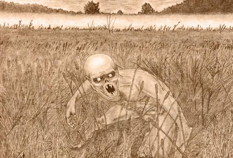 Так вот, иду я и замечаю краем глаза, что по полю из-за горизонта в моем направлении тянется линия, как будто зверек какой-то там бежит. Ну, думаю, может зайцы. Петляет еще так причудливо. Вдруг появились еще линии, сначала две, потом три, в итоге я насчитал семь штук. И быстро приближаются ко мне. Тут-то внутри меня начал просыпаться страх, причем очень быстро. И я ускорил шаг, а потом и вовсе побежал. Когда бежал, обернулся назад посмотреть, что же там происходит, и увидел, что линии добравшись до края поля, остановились. Как будто кто не хотел выходить на дорогу. И в этот момент, с места, где остановились линии, в меня полетел ком земли, он пролетел рядом с моим плечом. Перепугавшись до предела, я побежал еще быстрее, летели комья, падали впереди, рассыпаясь на куски, один правда попал мне в спину, но на тот момент я был в шоке, и не почувствовал сильной боли.
