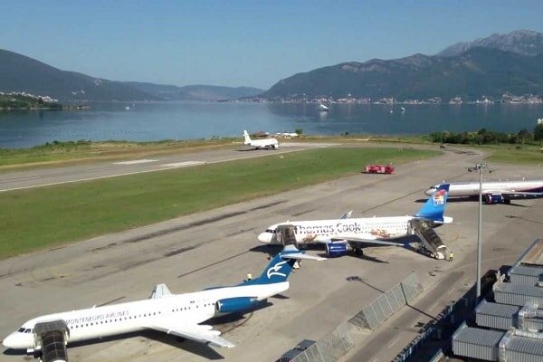 Взлет самолета с аэродрома города Тивата В Черногории.