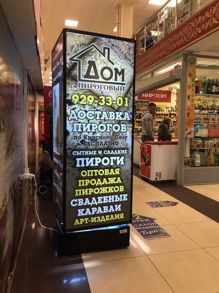 Немного о самом продукте. Пилларс это яркая, динамичная конструкция с мощной подсветкой, которая вращается(в среднем один круг за 1-1,3 минуты). На Пилларсе 4 рекламных поля.Размер рекламного пилларса в высоту около 2 метров,по диаметру 70 см. Размеры разные, в среднем это +/- 15 см. Впервые увидела конструкцию в ТЦ, очень понравилась, стала копать инфу.