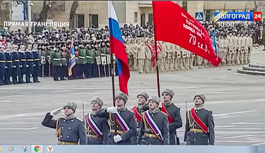 Прошлая история с размещением на день Победы в Кремлевском дворце ельцинского символа Знамени Победы, отмененного с 2007 года не пошла никому в прок и парад флагов продолжается. Так не далее как вчера на торжественном параде по случаю окончания Сталинградской битвы пронесли в соответствии ФЗ № 68 от 07.05.2007 года «О Знамени Победы» выполненную копию Знамени Победы, но...