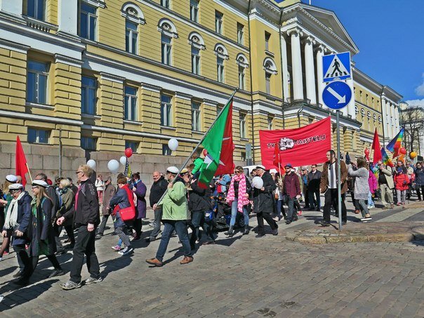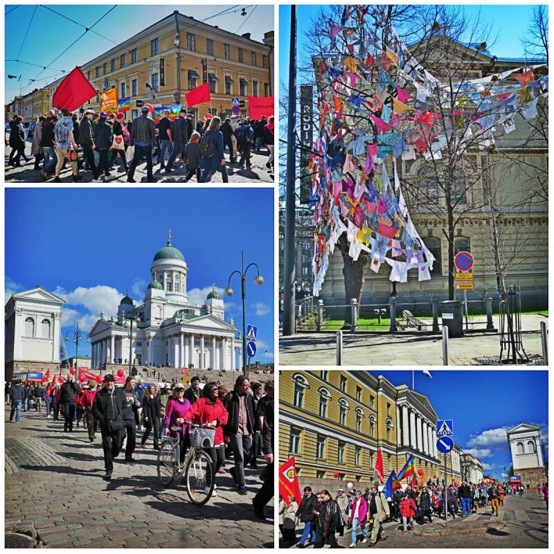 Первое мая в этом году застало меня в Хельсинки. Финская столица еще не успела отойти от Вальпургиевой ночи) Как на лицу вышли манифестанты под флагами профсоюзов, анархистов, ЛГБТ и других разных конфессий. На пути колонна попадалась мне часто, но фотоаппарат я достала лишь на Сенатской площади. А это последствия Вальпургиевой ночи