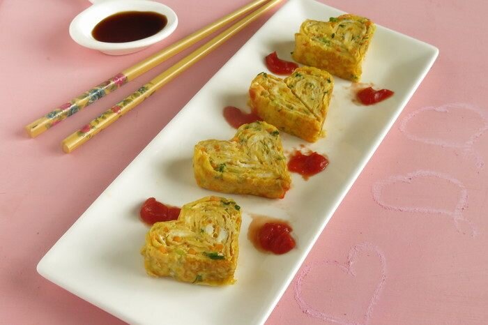 Угостите своего любимого или любимую омлетом в виде сердечек. яйца куриные........................................... 4 шт.