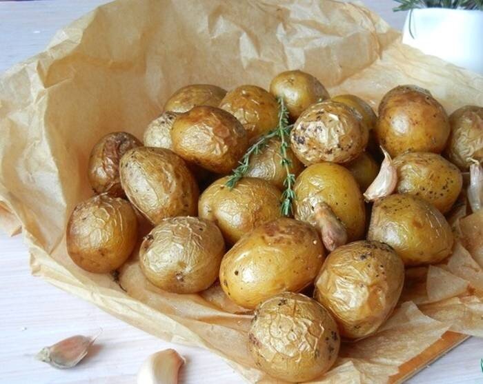 Рецепт, конечно, очень простой, но картофель по нему получается исключительно вкусным и ароматным, а уж как вкусен запеченный чеснок... картофель молодой............................................... 1 кг.