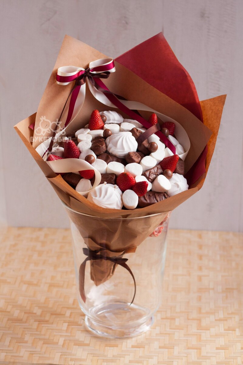 Букет из фруктов и конфет – очень оригинальный подарок, который точно запомнят! Мы в мастерской «Букет Обед» подготовили для вас интересные идеи фруктово-конфетных букетов. Баунти Зефир, батончики «баунти», маршмеллоу, шоколадные шарики, а также спелая клубника делают этот букет невероятно красивым и вкусным в прямом смысле этого слова! Такой подарок точно не оставит равнодушным ни одного сладкоежку. Чайный букет Оригинальный букет, состоящий из лимонов, апельсинов, груши, имбиря, мини-батончиков «Twix» и печенья «Wagon Wheels». Апельсины, лимбон и имбирь зарядят витаминами, а сладости – эндорфинами. Букет отлично подойдет для чаепития с друзьями или коллегами по работе. Дети тоже всегда в восторге от этого букета! Спасибо за просмотр! Подписывайтесь на наш канал – впереди еще много интересного! Автор: Ирина Дронова, менеджер по доставке в «Букет обед».