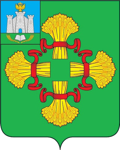 В зелёном поле четыре золотых снопа, перевязанные червлёными лентами, положенные крестообразно и развёрнутые к краям щита. Обоснование символики: