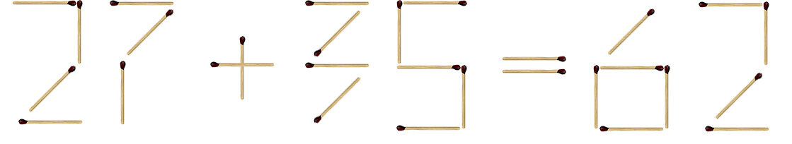 Переложите две спички так, чтобы верное равенство осталось верным. Шрифт должен быть как в почтовом индексе.